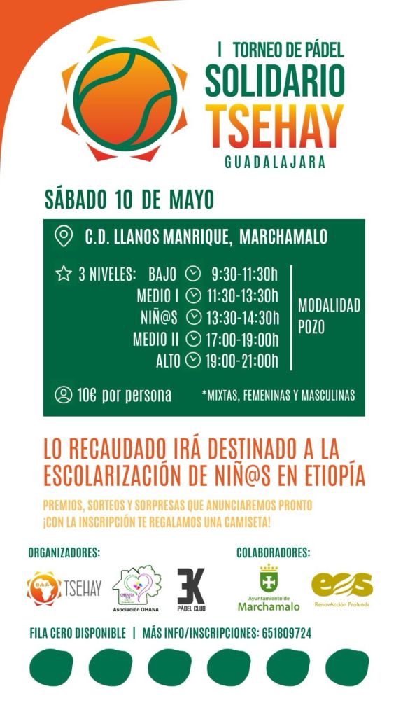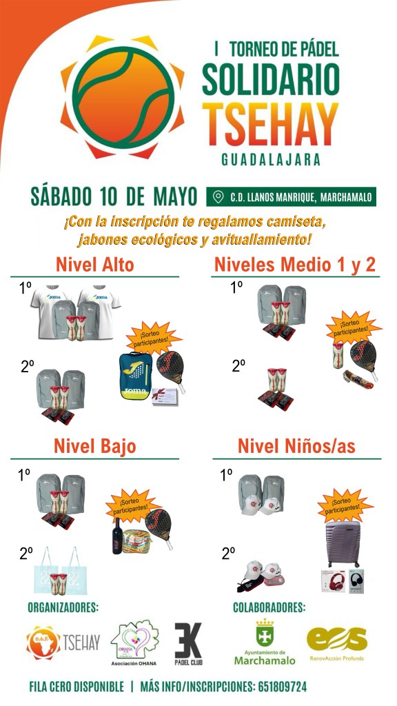 En Madrid llevan varios años realizando torneos de pádel benéficos para TSEHAY con increíbles resultados, así que este año hemos organizado uno uno en Marchamalo junto con el Club de Padel 3K, la colaboración del Ayuntamiento de Marchamalo, el patrocino de más de una docena de empresas y la participación de un centenar de personas.
